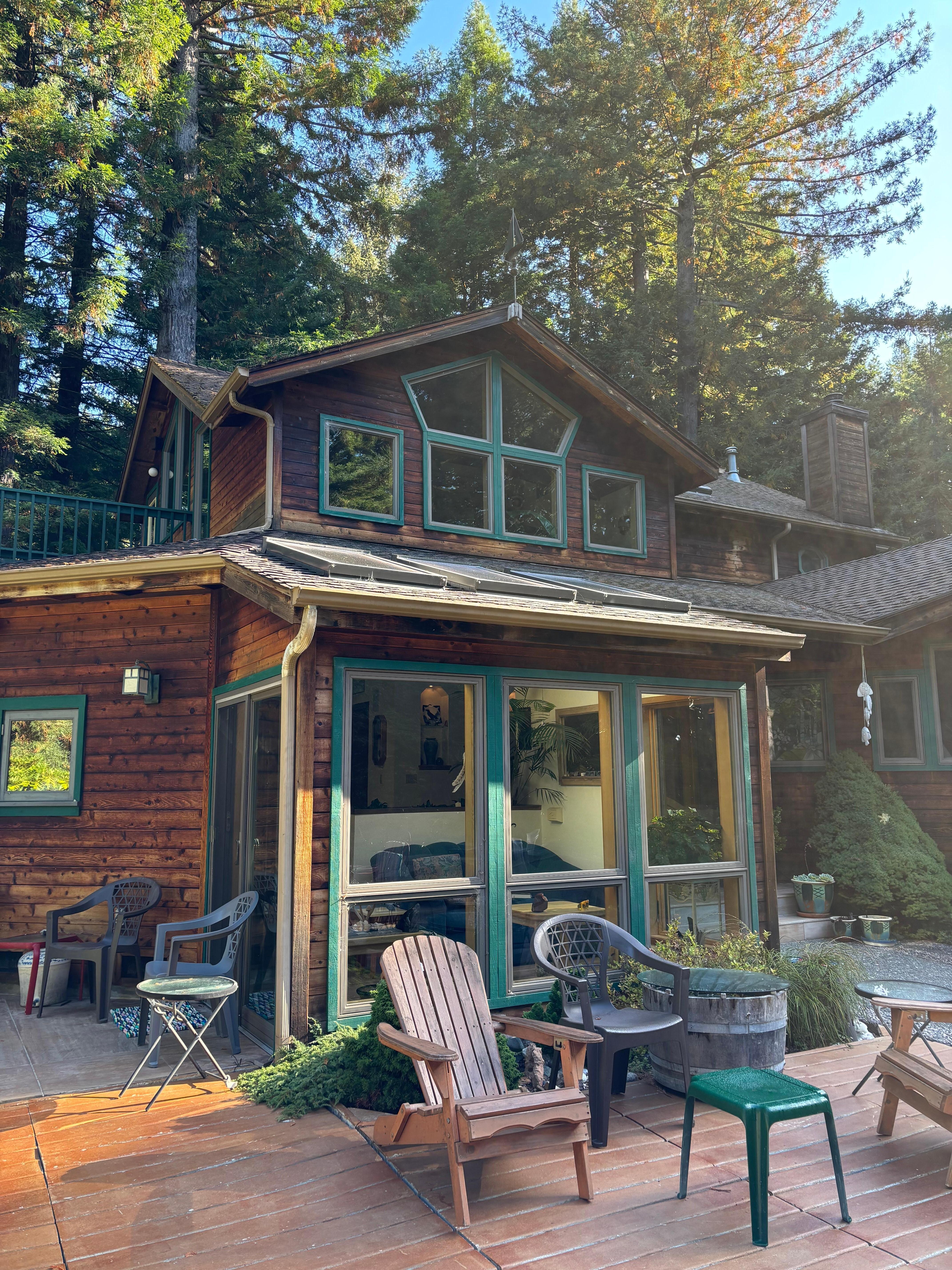 Less than a mile from the Historic Village of Trinidad, this elegant home is on four acres and at the end of a private road. It is snuggled into a mature redwood forest with a third of a mile of well groomed trails. Raven Ridge Retreat is located up a hill protecting it from the fog and wind of other beach side properties; this is a peaceful, private experience where the beauty of nature satisfies your craving for tranquility. Four benches have been placed along the trails to relax and to enjoy the exceptional creek and forest views. Around the front yard there is plenty of sun exposure. Quiet, except for the occasional sound of seals in the distance, and songs of chickadees, winter wrens and Douglas squirrels; this is truly a retreat. This wood-sided home has an outside hot tub on a private deck adjacent to the upstairs bedroom. The spacious front patio has a fire pit for those who want to spend their evenings outdoors. There is a ping-pong table in the garage. For the lawn there are croquet and bocce ball.