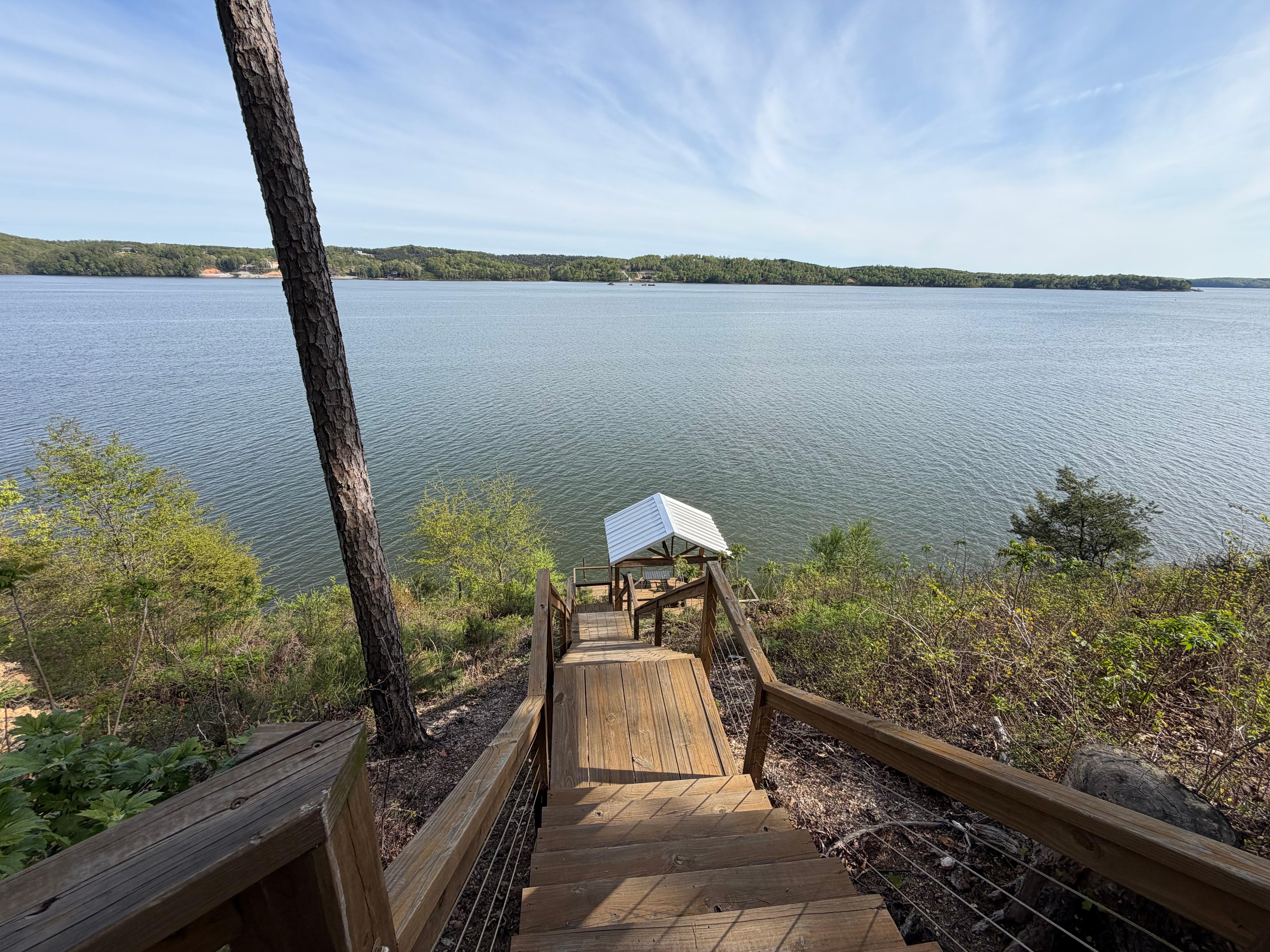 Nestled on a private mountain top overlooking Pickwick lake. This cottage was recently completely remodeled and offers the most relaxing stay. This property has beautiful lake views and its secluded spot on the lake, right across from bear creek, will be the perfect lake getaway for a couple or a small family. We have just added stairs down to the water! We also added a dock and a gazebo with amazing views.