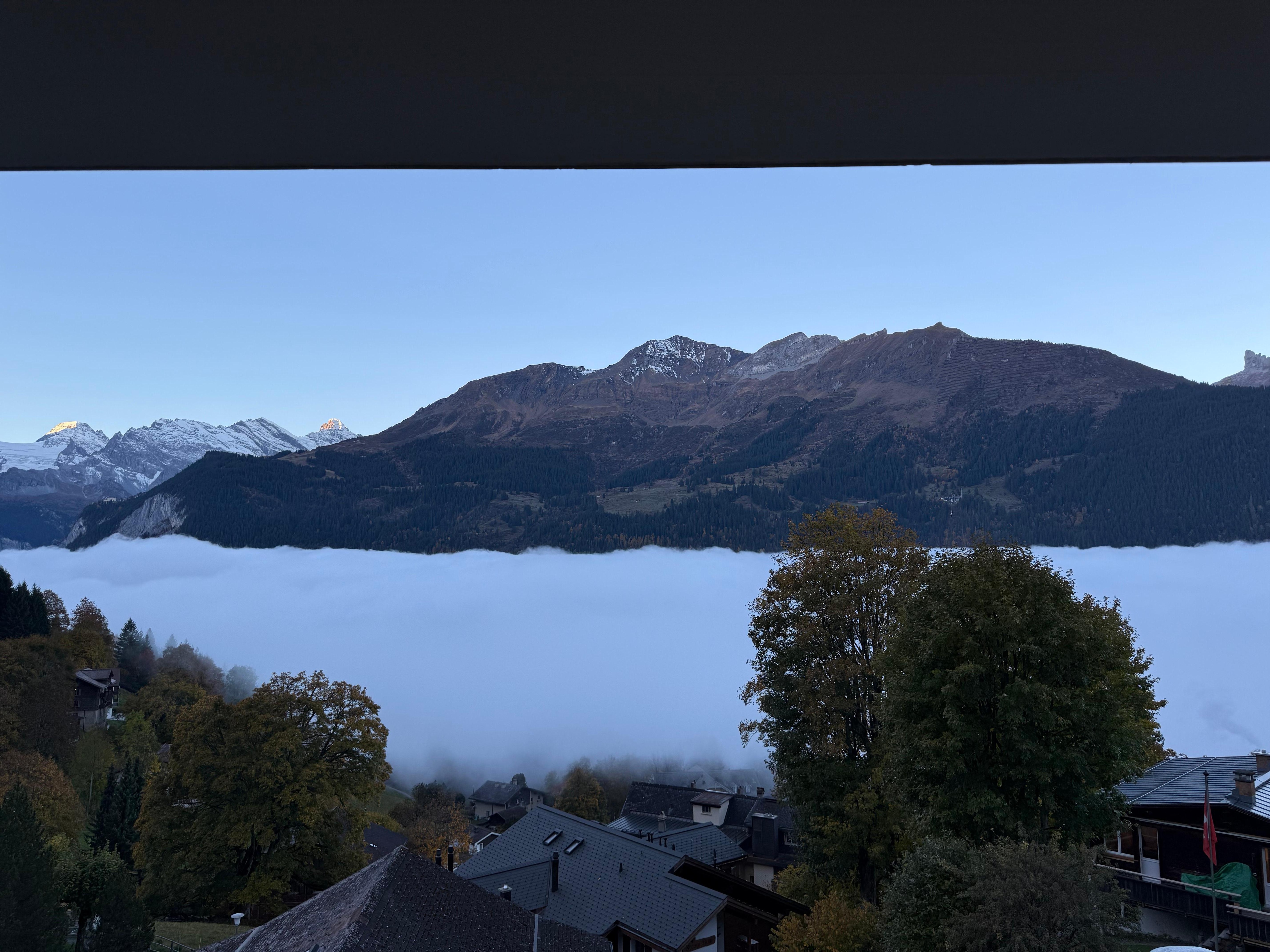 "Silberhorn Apt. DW", 3-room apartment 65 m2 on 1st floor. Bright, modern and tasteful furnishings: living/dining room with Scandinavian wood stove, dining table, satellite TV, cable TV, international TV channels, radio, CD-player and DVD. 1 room with 1 double bed (2 x 90 cm, length 200 cm) with 1 double bed (2 x 80 cm, length 200 cm). Open kitchen (oven, dishwasher, 4 induction hot plates, toaster, kettle, electric coffee machine, Capsules for coffee machine (Nespresso) extra, fondue Set (cheese)). Shower/WC, bath/shower/WC. Balcony 30 m2, south facing position and west facing position. Balcony furniture. Very beautiful panoramic view of the mountains. Facilities: iron, hair dryer, logs (extra). Internet (WiFi, free). Blu-ray player. Please note: non-smokers only. CH3824.42.1