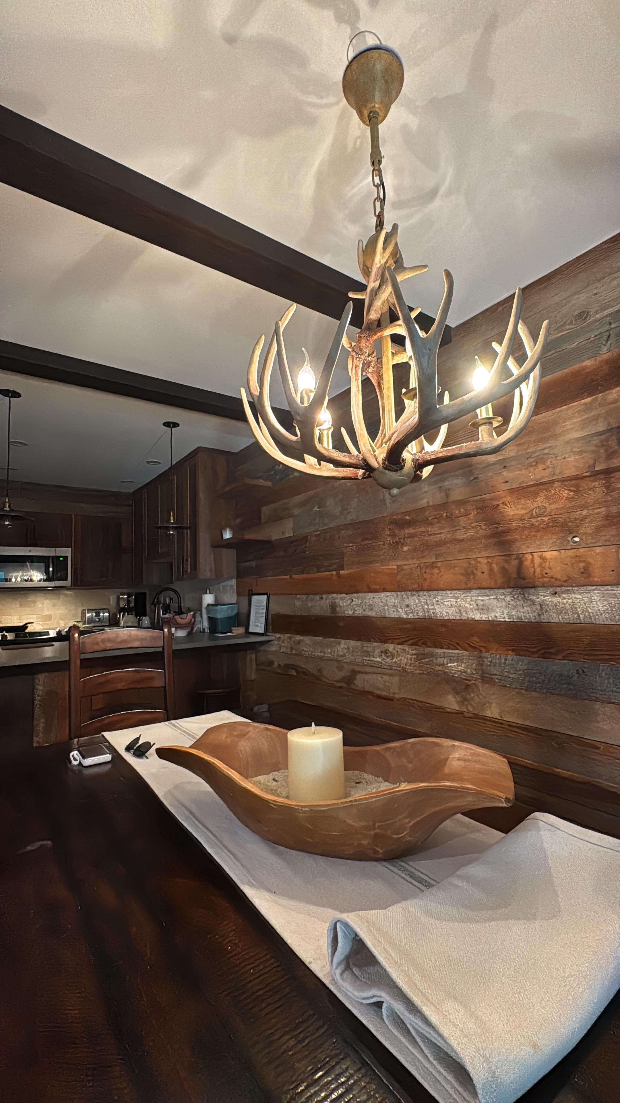 A fully equipped kitchen with stainless steel appliances, granite countertops, and a full range of cookware supports everything from quick breakfasts before first chair to unhurried dinners at home. The breakfast bar and dining table with bench seating make it easy to share meals and conversation after a full day outside.