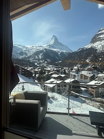 A fantastic chalet! You go to Zermatt for the mountains and skiing and this location is great for both. Matterhorn views from all balconies and front windows, as well as the heated pool. Skiing accessible via all 3 town lifts/train but is an uphill walk back home. The unit was well furnished, and seating for dining and relaxing was good for our group of 8 adults. Kitchen very well stocked to prepare some meals in house, but dining out in Zermatt is amazing. Hosts were readily accessible and very helpful before and during our trip. In particular great help getting luggage in and out for our stay, and arranging taxis from and to Bahnhof. Other items were the sauna inside near the pool, and the fireplace/woodstove in unit, both of which got plenty of use. Lastly make sure to get a brief tour of the fantastic wine cellar and sample some of the fine wines! We would definitely consider returning to Zermatt and Chalet Nepomuk!!